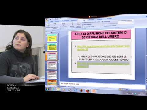 Al centro della penisola italica, da un'area coincidente per lo più con l'attuale Umbria e con alcune province del Lazio (Rieti, Viterbo e Roma), ci sono pervenuti dei documenti epigrafici datati tra la prima metà del IV ed il I sec. a. C. e redatti nell'antica lingua umbra, la cui peculiarità, al pari dell'osco (lingua dell'Italia antica meridionale che, in genere, si suole accomunare ed unire all'umbro, includendo entrambe nella medesima famiglia linguistica), è quella di avvalersi di due alfabeti di origini diverse, l'uno etrusco e l'altro latino, per rappresentare graficamente la stessa lingua. Nel corso di quest'intervento, si punterà a: 1) definire i caratteri essenziali dell'umbro cercando anche di sottolineare le differenze che intercorrono tra esso e l'osco; 2) fornire una breve storia della formazione dei due modelli grafici evidenziandone, anche tramite la visione di epigrafi, le differenze esistenti; 3) fornire una panoramica sia sui punti più problematici relativi allo studio dell'umbro che attualmente suscitano maggiormente l'attenzione degli studiosi, che sui più recenti ed aggiornati studi sulla materia in oggetto.